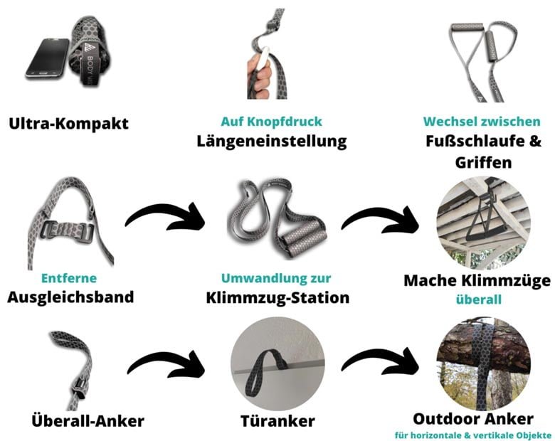 Tolle Möglichkeit effizient mit seinem Körpergewicht zu trainieren. Egal ob zuhause oder im Urlaub. Sehr gute Verarbeitung. Top !