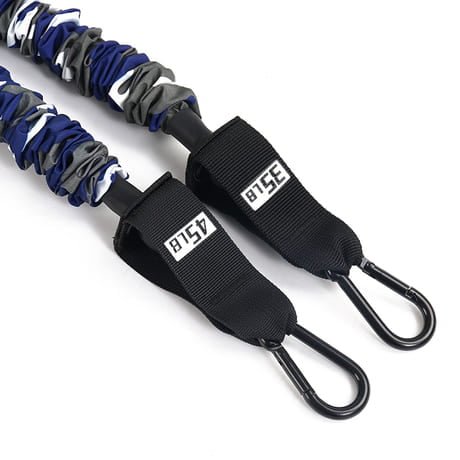 Train your strength, explosive power and strength endurance. Since our set offers 3 different resistances, you can easily adapt your resistance level to your training needs. You can adjust the resistance level by switching, adding, or removing bands. Multiple straps can be clipped into the D-rings on the handles.