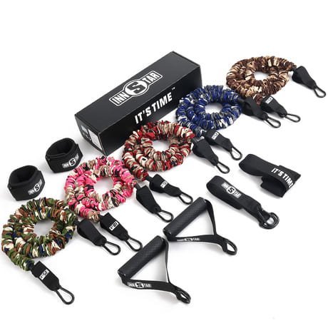 Train your strength, explosive power and strength endurance. Since our set offers 5 different resistances, you can easily adapt your resistance level to your training needs. You can adjust the resistance level by switching, adding, or removing bands. Multiple straps can be clipped into the D-rings on the handles.